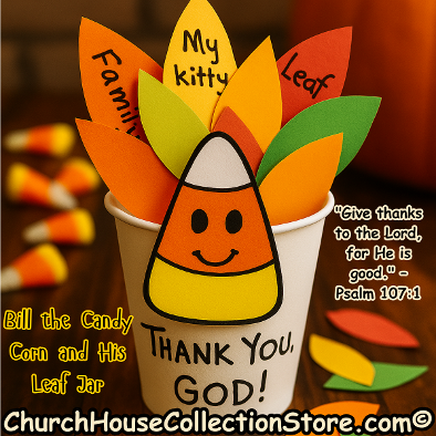 π Bill The Candy Corn Thankfulness Jar- About thanking God for giving us good things.